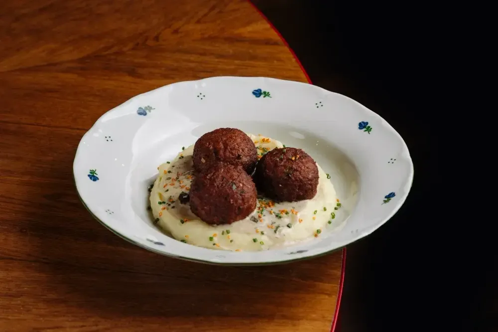 Митболы с картофельным пюре и трюфельным соусом