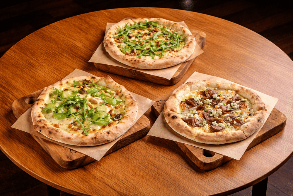 Набор пицц "экзотический": пицца с угрем , пицца с креветками и цукини , пицца с говядиной и печеной тыквой