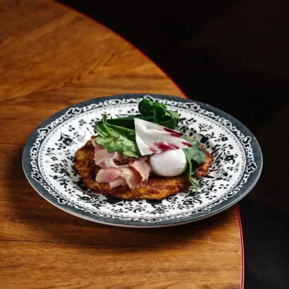 Драник с лососем и яйцом пашот