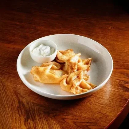 Сырники из топленого творога с фисташковым муссом