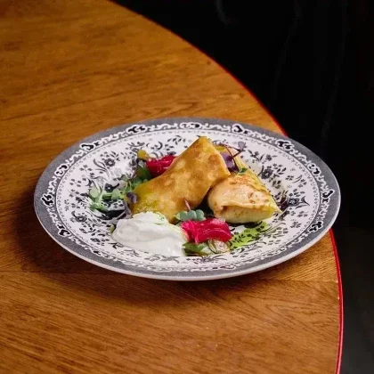 Блины с лососем, тунцом и соусом "Тоннато"