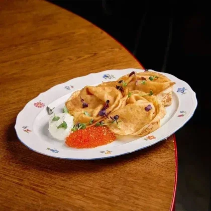 Блины румяные с красной икрой