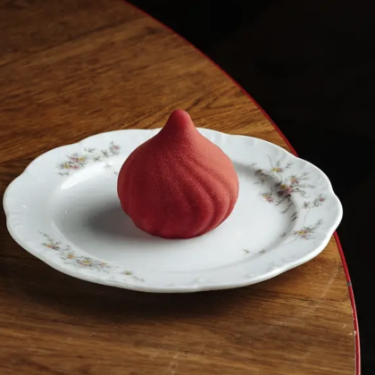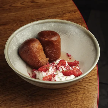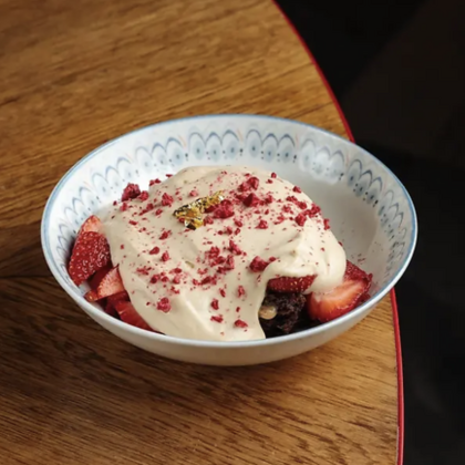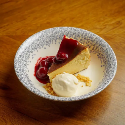 Баскский чизкейк со сметанным мороженым и вишнёвым соусом
