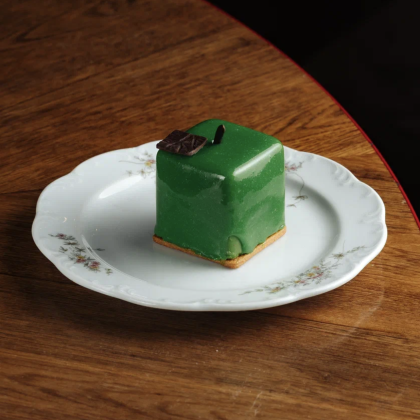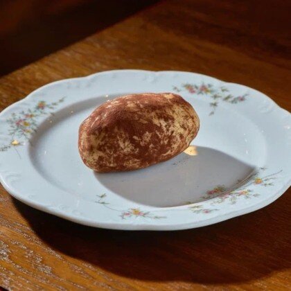Мусс из сыра маскарпоне (желток, сливки, сахар, кофейный ликер) Между слоями печенье савоярди пропитанное кофе. Декор какао-порошок.